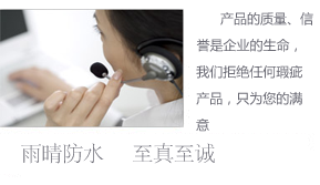 產(chǎn)品的質(zhì)量、信譽是企業(yè)的生命,一方面我們雨晴全體員工以“誠信”為基石,在產(chǎn)品服務上拒絕任何瑕疵,以先進的技術在競爭中取勝,以真誠待人的態(tài)度,熟練的業(yè)務技能和規(guī)范的服務流程......[詳情]